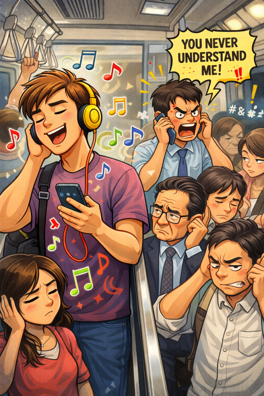The entire cabin is now treated to someone’s playlist or a very personal phone call about their relationship problems. We did not buy tickets, but we are attending the concert anyway.